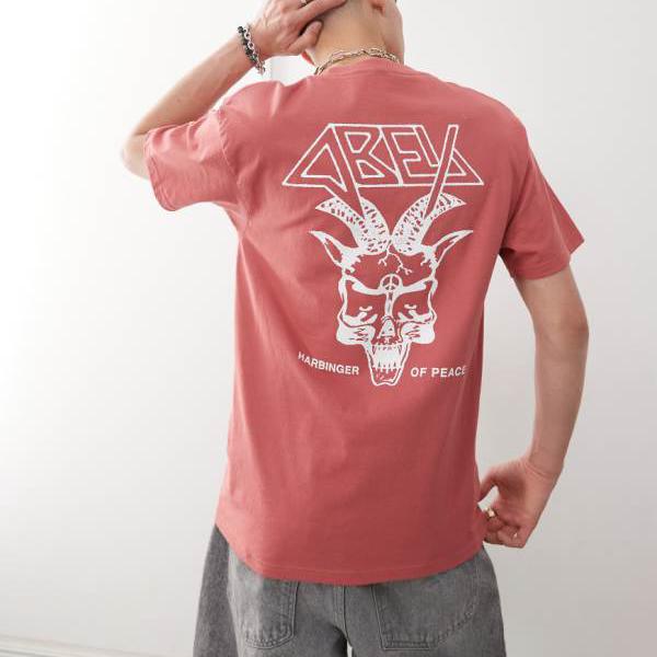 オベイ Obey Obey Harbinger of PeaceグラフィックロゴTシャツ(バックプリント:ミネラルレッド) トップス メンズ 男性 インポートブランド 小さいサイズから大きいサイズまで