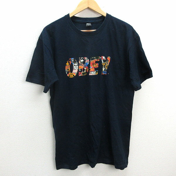 y■オベイ/OBEY プリントロゴ Tシャツ■黒【メンズL】MENS/107【中古】